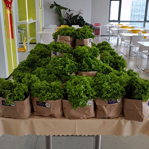 交流结束后,大家来到食堂品尝“绿色小情蔬”,综能公司还精心准备了伴手礼--由京能国际位于大兴庄的“科技农业+生态文旅+智慧能源”产业融合项目生产的蔬菜大礼包。该项目融合空间种植、可再生能源、智能管理系统等多种技术,联合高校、科研院所和专业建设单位,实现农业高效、绿色、低碳发展,是公司响应国家乡村振兴战略,助力实现“双碳”目标的有力体现。