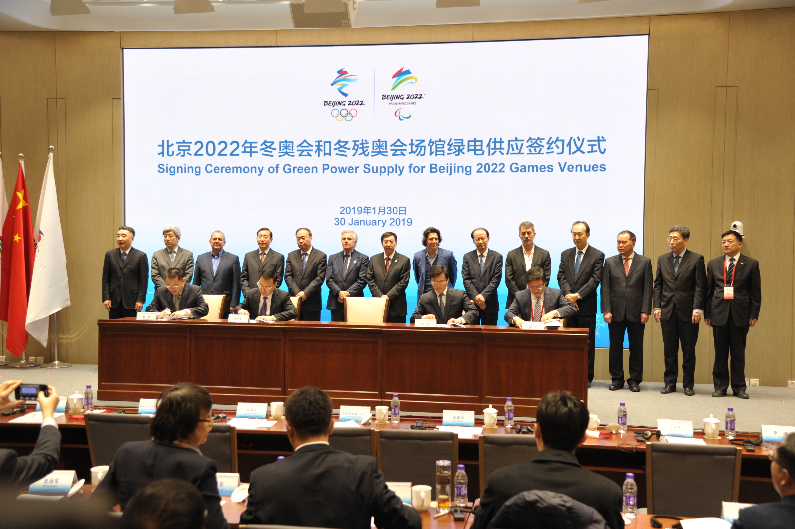 1月30日,北京2022年冬奥会和冬残奥会场馆绿电供应签约仪式在北京冬奥组委会议楼一层多功能厅举办。国际奥委会第一副主席、北京2022年冬奥会协调委员会主席胡安·萨马兰奇,北京市副市长、北京冬奥组委执行副主席张建东,国家能源局监管总监李冶,国家电网公司总经理辛保安等领导出席签约仪式。北京冬奥组委副秘书长徐志军与场馆主代表北京市国有资产经营有限责任公司总裁直军、张家口奥体建设开发有限公司董事长朱有平签署绿色电力使用承诺书。av在线 党委书记、董事长姜帆,中国华电集团有限公司市场营销部主任赵晓东代表清洁能源发电企业与国网北京市电力公司、国网冀北电力有限公司签署购电协议。