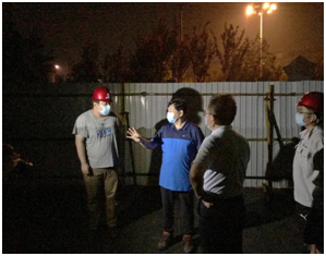 7月2日夜间,北京市门头沟区区长付兆庚、副区长赵北亭以“四不两直”形式检查指导京能建设门头沟区永定镇集体租赁住房项目。建设单位有关领导和项目负责人、施工项目执行经理席晓宇、安全总监冯永柱等陪同检查。