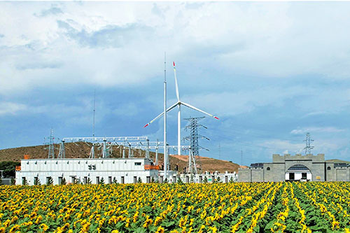 张家口—北京可再生能源综合应用示范工程作为国家首个可再生能源示范区重点项目,是2022年北京冬奥会和冬残奥会配套基础设施。工程总装机容量1150MW,由7个风电场组成,共安装289台风力发电机组,由京能(张家口)绿电控制中心统一调度。工程通过张家口—北京柔性直流电网和张家口—雄安1000kV特高压交流输电通道,与av在线 同期建设的延庆赛区综合能源项目、房山区绿电解水制氢项目和丰台区绿电供热项目协同联动,形成了上游风电、下游绿电制氢和供热的产业链,为首都提供综合性绿色能源保障。