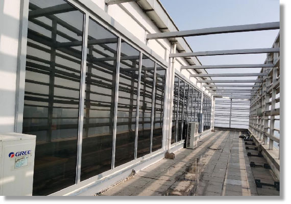 光伏幕墙:大厦31层南向建设3.3kW幕墙光伏系统,采用半透光碲化镉组件,实现了发电、遮阳一体化。