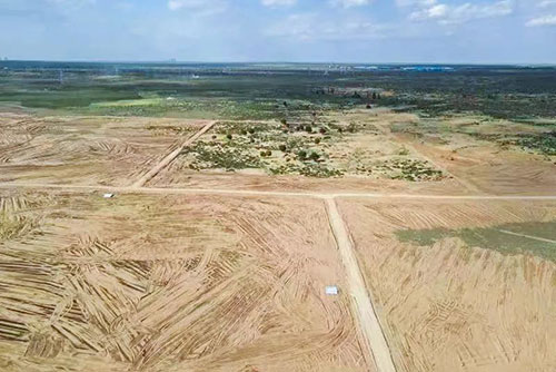 宁夏回族自治区东北部灵武市宁东镇永利村,地形平坦开阔、日照时间长、辐射强度和大气透明度高,具有建设大型光伏电站得天独厚的优势。但项目地处毛乌素沙漠边缘地带、鄂尔多斯台地与黄土高原的过渡带,生态环境十分脆弱。