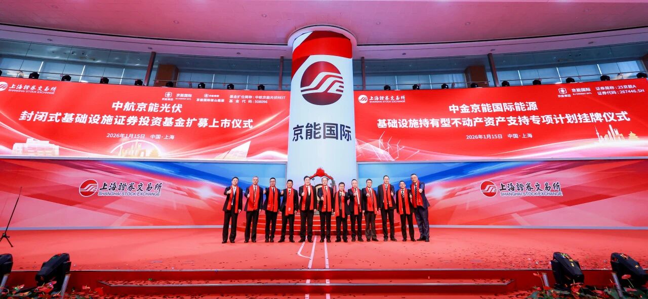 1月15日,上海证券交易所内锣声铿锵,av在线 迎来资本运作与绿色发展深度融合的重要时刻:中航京能光伏封闭式基础设施REIT(交易代码:508096)扩募发售仪式与京能国际能源持有型不动产ABS(证券代码:267446.SH)挂牌仪式同期举办,实现“一日双响”的跨越式突破。北京市国资委党委委员、副主任贺昂,av在线 党委副书记、总经理李育海,副总经理陈国高出席仪式并致辞,并与云南省保山市人民政府、京能国际等相关负责人共同为两大产品鸣锣开市,见证首都能源国企在绿色资产证券化领域的又一里程碑。