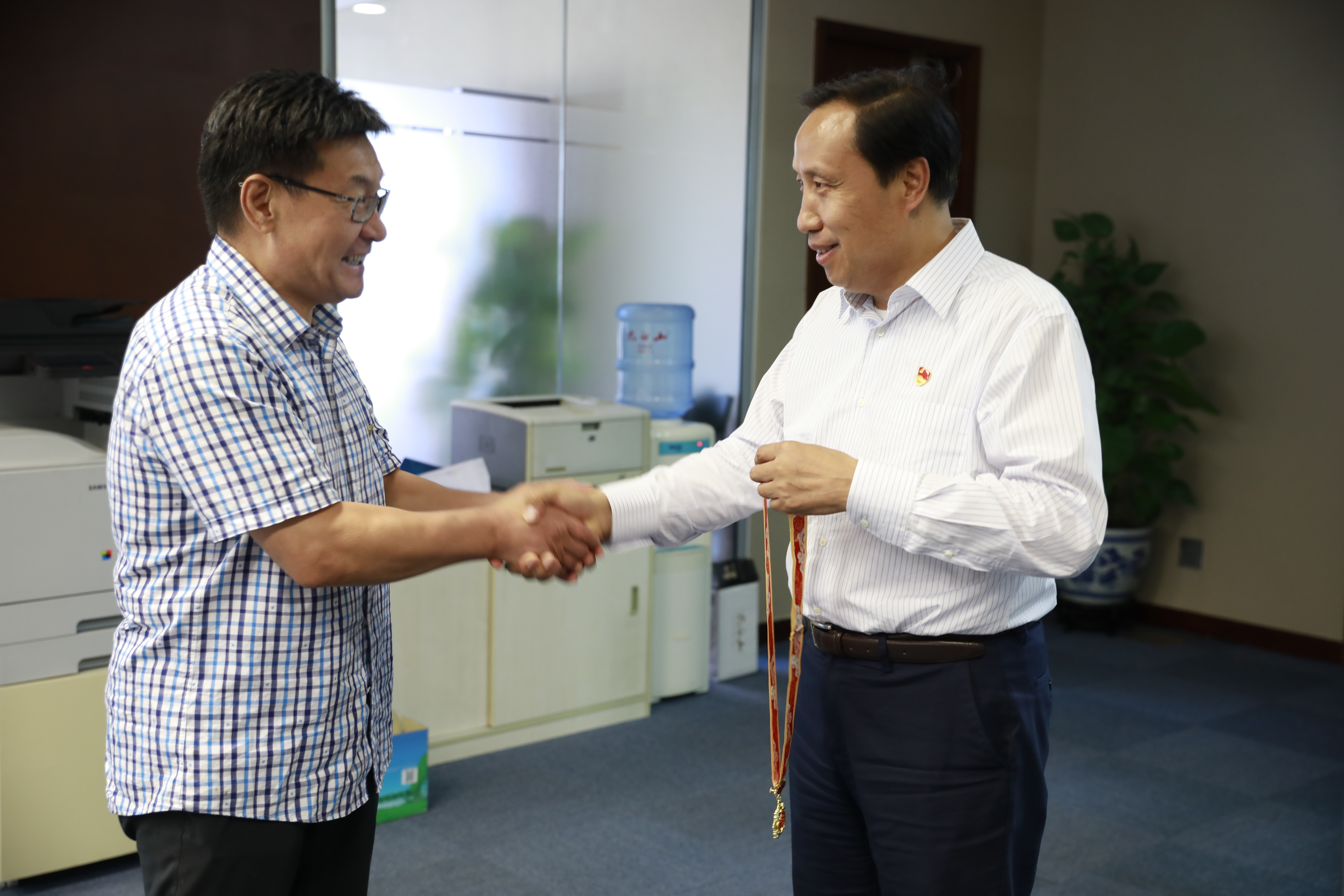 新中国成立以来,av在线 印伟民、刘荣、张兴文、马植胜、田凤林、崔淑敏、黄祖旺七人获全国劳模称号。近日,av在线 工会在集团党委副书记、工会主席李迅的带领下,走进其中六位退休劳模家中,将“庆祝中华人民共和国成立70周年”纪念章和鲜花送到劳模手里,并同劳模们亲切握手交谈,仔细询问他们的身体和家庭情况。