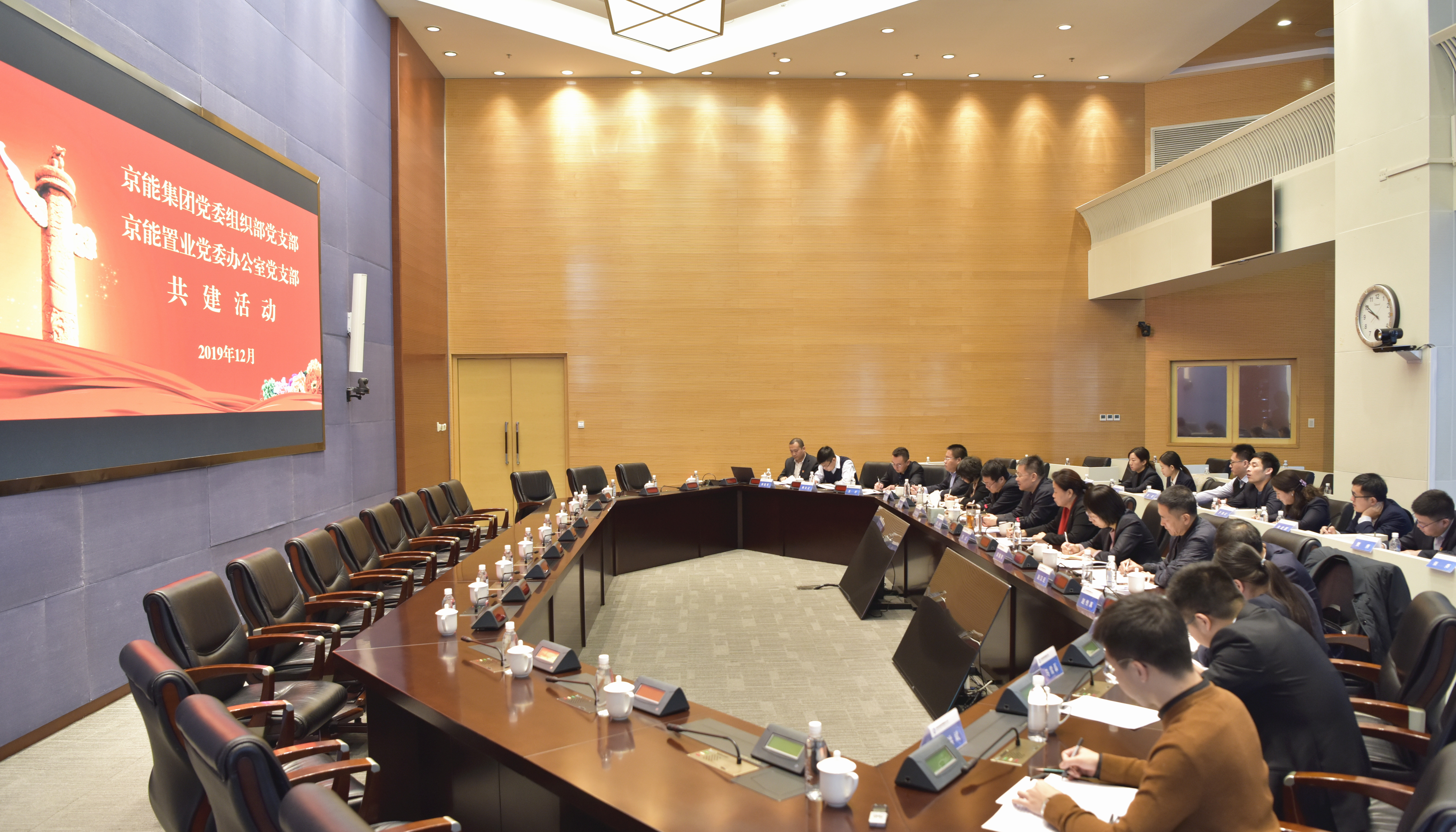 集团党委常委、组织部长、党委组织部党支部书记范红同志主持会议并进行了交流发言。京能置业党委书记、董事长周建裕同志代表京能置业党委办公室党支部进行了交流发言。集团党委书记、董事长姜帆同志以普通党员身份参加了支部的共建活动,并发表了重要讲话。