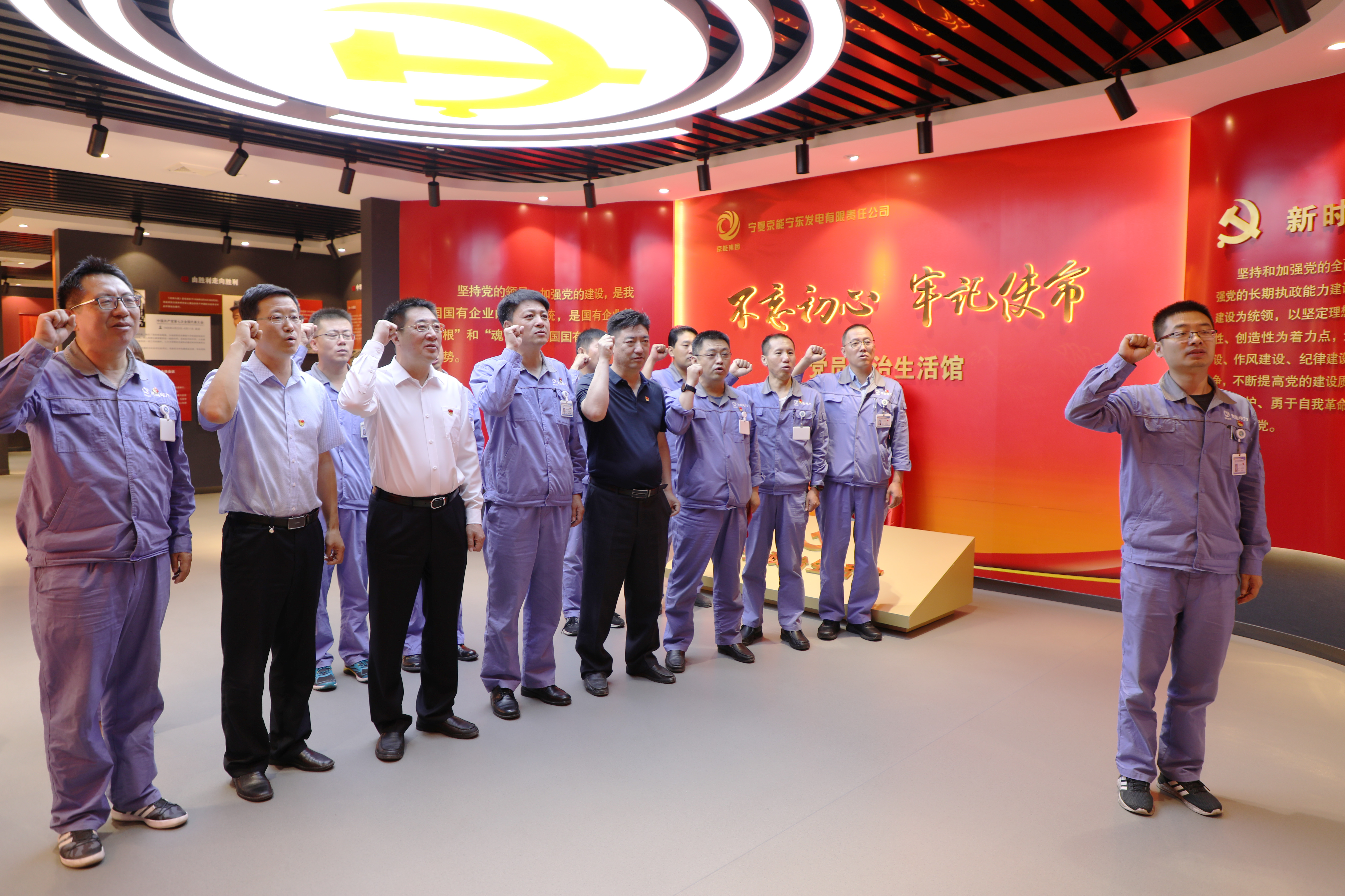 当日上午十时,宁东发电公司举行了党员政治生活馆揭牌仪式,宁东能源化工基地党工委常务副书记陶少华与宁东发电公司党委书记、董事长苏永健为党员政治生活馆揭牌,公司党委班子、党支部书记和部分党员代表面对党旗庄严宣誓,重温入党誓词。