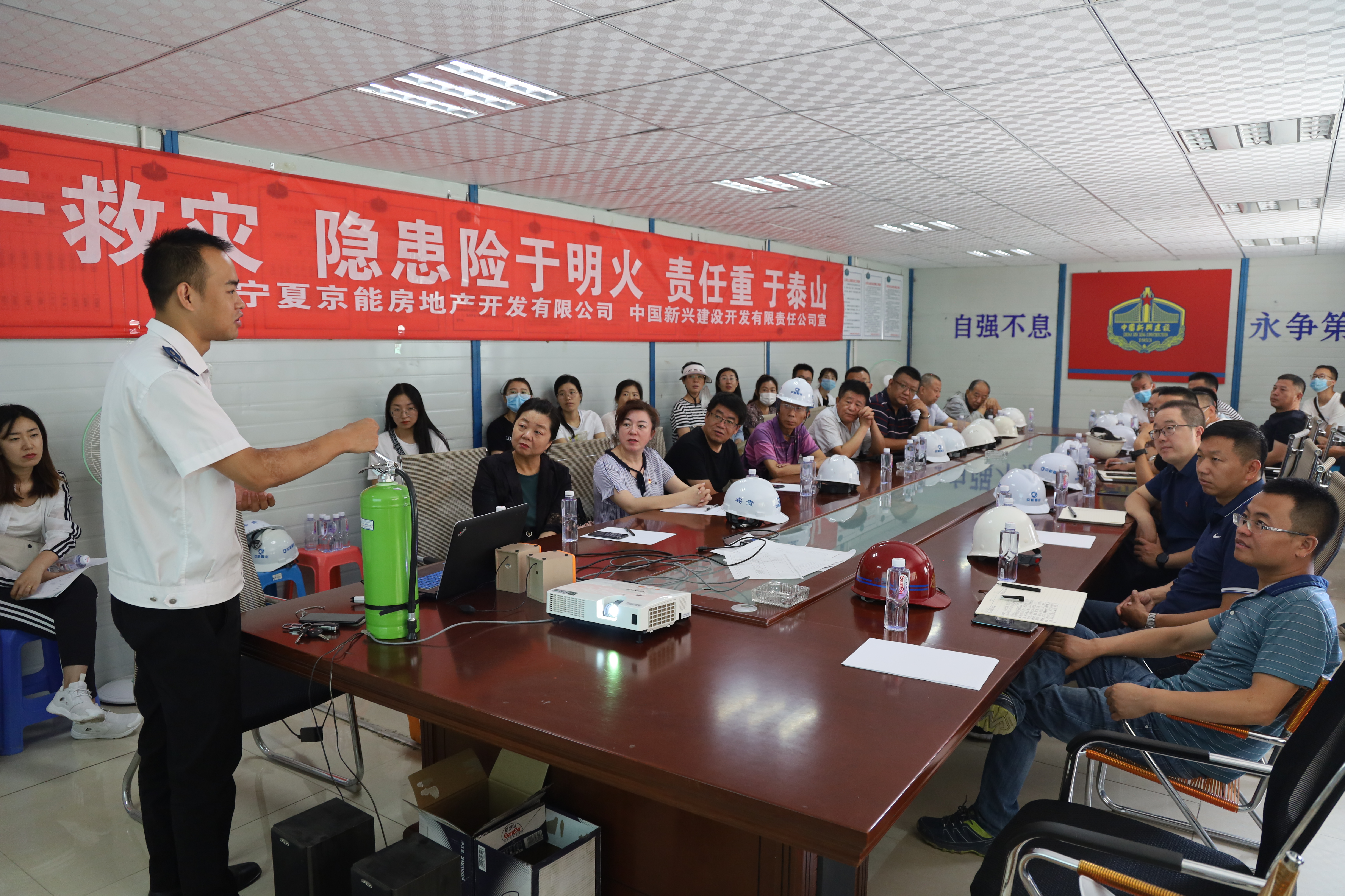 为进一步增强消防安全意识,提升应急自救能力,筑牢建筑工地消防安全底线,810日上午,宁夏京能房地产开发有限公司与银川市质监站联合开展消防安全培训及消防演练活动。本次培训特邀安全健康教育网李博教官主讲,中国新兴建设开发责任有限公司、建研凯勃建设工程咨询有限公司等总包、监理单位参加了活动。