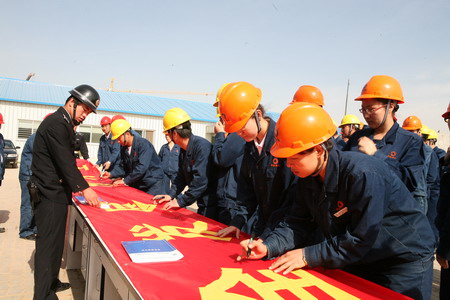 启动仪式由公司副总经理刘春晓主持,他在讲话中指出:随着工程建设安装工作的全面展开,施工任务日益繁重,安全管控难度越来越大,各部门要在开展好“安全生产月”活动同时,加强安全教育,提高员工安全素质。公司全体人员必须以满腔地热情参与到次项活动中来,紧紧围绕“安全发展,预防为主”这一主题开展活动,为顺利实现公司全年各项工作的目标作出贡献。